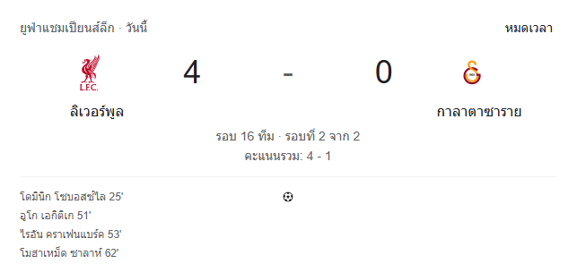 ผลบอลสด ยูฟ่า แชมเปี้ยนส์ ลีก ระหว่าง ลิเวอร์พูล vs กาลาตาซาราย วันนี้ 19/3/69 ดูบอลย้อนหลัง คลิปไฮไลท์ ดูบอล ยูฟ่า แชมเปี้ยนส์ ลีก