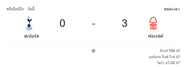 ผลบอลสด พรีเมียร์ลีก อังกฤษ ระหว่าง สเปอร์ส vs น็อตติ้งแฮม ฟอเรสต์ วันนี้ 22/3/69 ดูบอลย้อนหลัง คลิปไฮไลท์ ดูบอล พรีเมียร์ลีก อังกฤษ