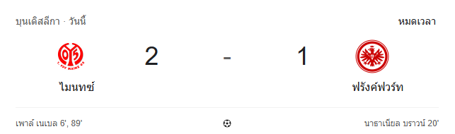 ผลบอลสด บุนเดสลีกา ระหว่าง ไมนซ์ vs ไอน์ทรัค แฟร้งค์เฟิร์ต วันนี้ 22/3/69 ดูบอลย้อนหลัง คลิปไฮไลท์ ดูบอล บุนเดสลีกา