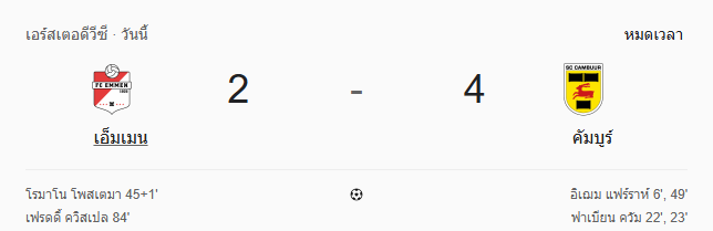 ผลบอลสด ฮอลแลนด์ ดิวิชั่น 2 ระหว่าง เอ็มเมน vs คัมบูร์ วันนี้ 25/3/69 ดูบอลย้อนหลัง คลิปไฮไลท์ ดูบอล ฮอลแลนด์ ดิวิชั่น 2