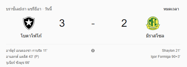 ผลบอลสด ซีรีส์ เอ บราซิล ระหว่าง โบตาโฟโก vs มิราสโซล วันนี้ 2/4/69 ดูบอลย้อนหลัง คลิปไฮไลท์ ดูบอล ซีรีส์ เอ บราซิล