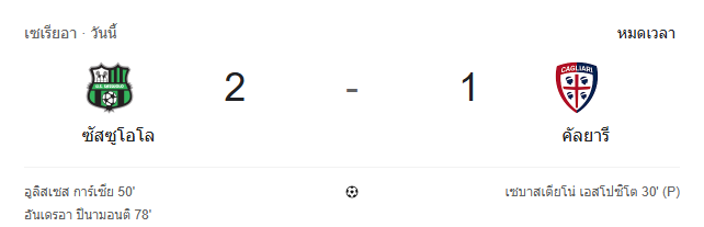 - หมดเวลา: ซัสซูโอโล่ พลิกแซงเอาชนะ กายารี่ 2-1 แบบสุดมันส์ 🔥