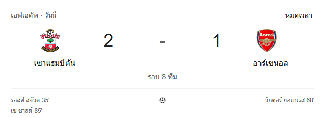 - หมดเวลา: เซาแธมป์ตันเฉือนชนะ อาร์เซนอล 2-1 แบบสุดมันส์ 🔥