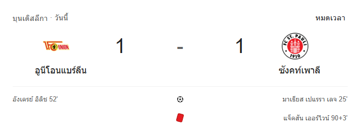 • จบครึ่งแรก: ยูเนี่ยน เบอร์ลิน ตามหลัง ซังต์ เพาลี 0-1