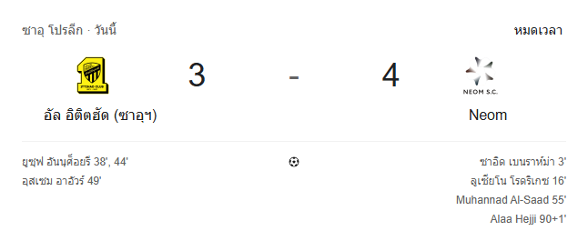 ผลบอลสด ซาอุดิ ลีก ระหว่าง อัล อิตติฮัด vs นีออม วันนี้ 8/4/69 ดูบอลย้อนหลัง คลิปไฮไลท์ ดูบอล ซาอุดิ ลีก