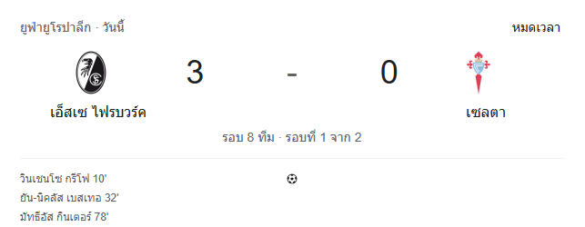 ผลบอลสด ยูโรปา ลีก ระหว่าง ไฟร์บวร์ก vs เซลต้า บีโก้ วันนี้ 10/4/69 ดูบอลย้อนหลัง คลิปไฮไลท์ ดูบอล ยูโรปา ลีก