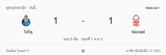 ผลบอลสด ยูโรปา ลีก ระหว่าง ปอร์โต้ vs น็อตติ้งแฮม ฟอเรสต์ วันนี้ 10/4/69 ดูบอลย้อนหลัง คลิปไฮไลท์ ดูบอล ยูโรปา ลีก