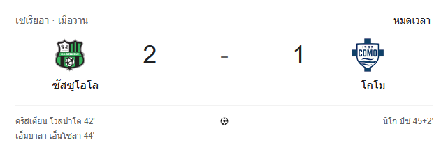 ผลบอลสด กัลโช่ เซเรีย อา ระหว่าง ซาสซูโอโล่ vs โคโม่ วันนี้ 17/4/69 ดูบอลย้อนหลัง คลิปไฮไลท์ ดูบอล กัลโช่ เซเรีย อา