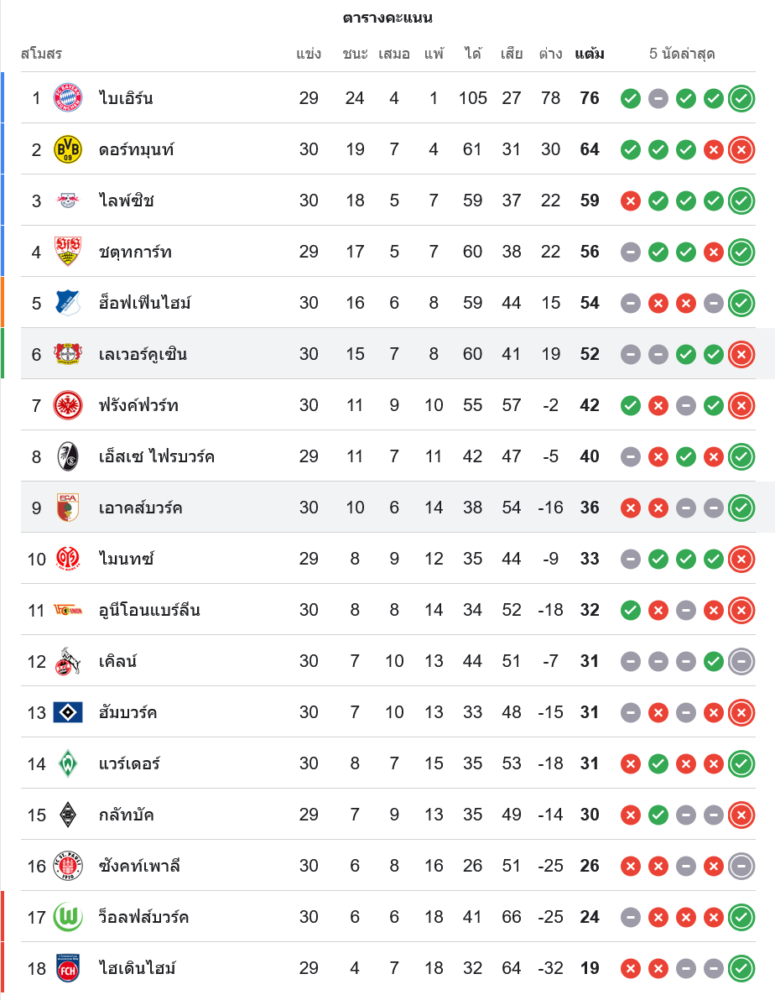 สถานการณ์ในตารางคะแนนบุนเดสลีกา