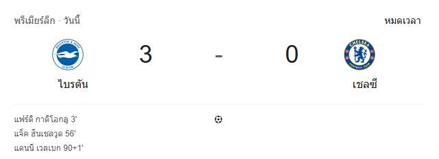 ผลบอลสด พรีเมียร์ลีก อังกฤษ ระหว่าง ไบรท์ตัน vs เชลซี วันนี้ 22/4/69 ดูบอลย้อนหลัง คลิปไฮไลท์ ดูบอล พรีเมียร์ลีก อังกฤษ