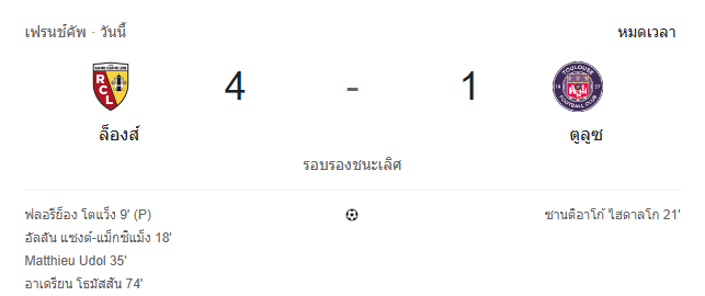ผลบอลสด เฟร้นช์ คัพ ระหว่าง ล็องส์ vs ตูลูส วันนี้ 22/4/69 ดูบอลย้อนหลัง คลิปไฮไลท์ ดูบอล เฟร้นช์ คัพ
