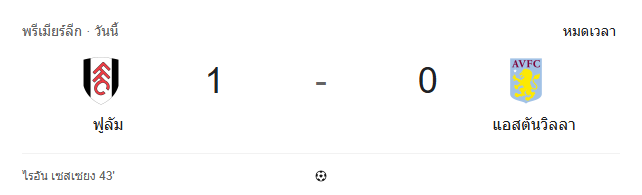ผลบอลสด พรีเมียร์ลีก อังกฤษ ระหว่าง ฟูแล่ม vs แอสตัน วิลล่า วันนี้ 25/4/69 ดูบอลย้อนหลัง คลิปไฮไลท์ ดูบอล พรีเมียร์ลีก อังกฤษ