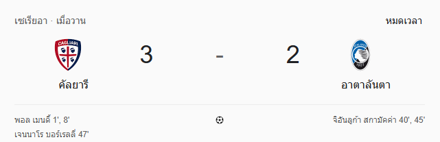 ผลบอลสด กัลโช่ เซเรีย อา ระหว่าง กายารี่ vs อตาลันต้า วันนี้ 27/4/69 ดูบอลย้อนหลัง คลิปไฮไลท์ ดูบอล กัลโช่ เซเรีย อา
