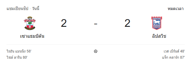 ผลบอลสด แชมเปี้ยนชิพ อังกฤษ ระหว่าง เซาธ์แฮมป์ตัน vs อิปสวิช ทาวน์ วันนี้ 29/4/69 ดูบอลย้อนหลัง คลิปไฮไลท์ ดูบอล แชมเปี้ยนชิพ อังกฤษ