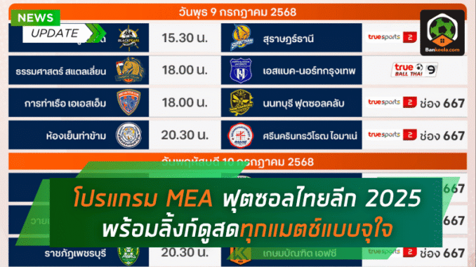 โปรแกรม MEA ฟุตซอลไทยลีก 2025 พร้อมลิ้งก์ดูสด