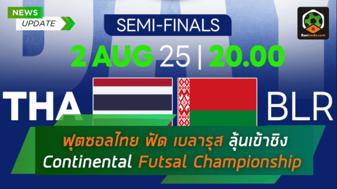 ถึงเวลาที่แฟนลูกหนังโต๊ะเล็กต้องโฟกัสให้สุด เพราะค่ำคืนวันเสาร์ที่ 2 สิงหาคม 2568 นี้ ทีมฟุตซอลทีมชาติไทย เตรียมลงทำศึกสำคัญในรอบรองชนะเลิศ ศึก Continental Futsal Championship 2025 โดยมีคิวปะทะกับทีมแกร่งจากยุโรปตะวันออกอย่าง เบลารุส ที่ฟอร์มแรงใช่ย่อย งานนี้เปิดฉากระเบิดแข้งกันที่ โรงยิมเนเซียน สนามกีฬากลาง จังหวัดนนทบุรี เวลา 20.00 น. แฟนบอลสามารถติดตามชมการถ่ายทอดสดได้ทาง True Sports 2 และ True Ball Thai 9 งานนี้ไม่มีคำว่าพลาด เพราะโอกาสเข้าชิงแชมป์อยู่แค่เอื้อม!