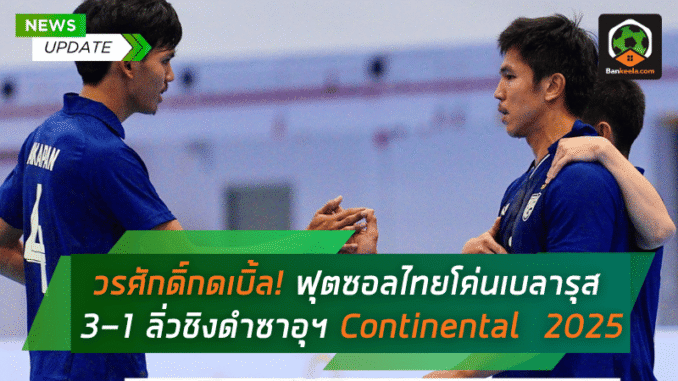 ทีมฟุตซอลทีมชาติไทยยังคงเดินหน้าสร้างผลงานระดับพระกาฬในเวที Continental Futsal Championship 2025 หลังระเบิดฟอร์มเด็ดจัดการสยบ ทีมชาติเบลารุส ไปแบบสวยหรู 3-1 จากความยอดเยี่ยมของ วรศักดิ์ ศรีหรั่งไพโรจน์ ที่สวมบทฮีโร่เหมาคนเดียวสองประตู นำช้างศึกโต๊ะเล็กกรุยทางเข้าสู่รอบชิงชนะเลิศ เตรียมวัดดวงชิงแชมป์กับ ซาอุดีอาระเบีย วันเสาร์ที่ 3 สิงหาคมนี้ เวลา 19.00 น. ณ ยิมเนเซียม สนามกีฬากลางจังหวัดนนทบุรี