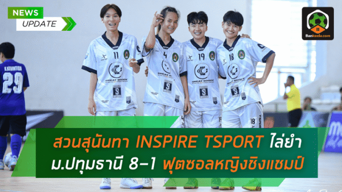 ศึก ฟุตซอลหญิงชิงแชมป์ประเทศไทย เมืองไทยประกันภัย เดอะแชมเปี้ยนชิพ วีเมนส์ ฟุตซอล 2025 เมื่อวันที่ 12 สิงหาคม 2568 ที่สนามกีฬาในร่มเอ็นที สำนักงานใหญ่ ถ.แจ้งวัฒนะ แฟนบอลในสนามได้เห็นบทพิสูจน์ความร้อนแรงของ สวนสุนันทา INSPIRE TSPORT ที่เดินหน้าถล่มคู่แข่งแบบไม่ไว้หน้า ด้วยการเอาชนะ มหาวิทยาลัยปทุมธานี เอฟซี ไปแบบขาดลอย 8-1 เก็บชัยชนะสุดมันส์และตอกย้ำความแข็งแกร่งของทีม