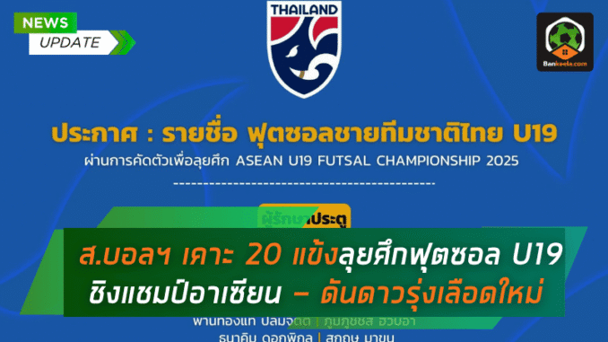 สมาคมกีฬาฟุตบอลแห่งประเทศไทยฯ ภายใต้การนำของ “บุญเลิศ เจริญวงศ์” เดินหน้าส่งทัพ “ฟุตซอลชายทีมชาติไทย U19” เตรียมสร้างความฮือฮาในศึก ASEAN U19 FUTSAL CHAMPIONSHIP 2025 หลังประกาศรายชื่อ 20 นักเตะเลือดใหม่ ที่ผ่านการคัดตัวอย่างเข้มข้น เพื่อสวมเสื้อทีมชาติไทย ลุยศึกชิงจ้าวอาเซียน ปลายปีนี้