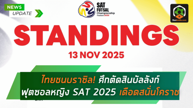 ศึก SAT Women’s Futsal Championship Thailand 2025 กำลังเดินทางมาถึงฉากสุดท้าย และนี่คือแมตช์ที่ทุกคนรอคอยอย่างแท้จริง เมื่อทีมชาติ ไทย ต้องเปิดศึกดวลเดือดกับ บราซิล มหาอำนาจฟุตซอลหญิงระดับโลก การเจอกันครั้งนี้ไม่ใช่แค่เกมธรรมดา แต่เป็นบทพิสูจน์ความแข็งแกร่ง ความมุ่งมั่น และศักดิ์ศรีของทัพโต๊ะเล็กสาวไทยในบ้านของตัวเอง พร้อมแรงเชียร์ล้นฮอลล์จากแฟนๆ ที่พร้อมระเบิดพลังให้สุดเสียง