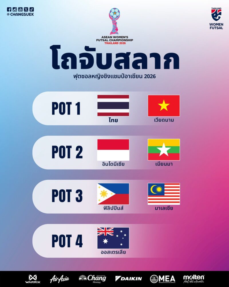ฟุตซอลหญิงทีมชาติไทยนำทัพอาเซียน รอจับสลากชิงแชมป์ 2026