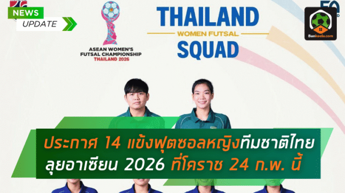 ประกาศ 14 แข้งฟุตซอลหญิงทีมชาติไทย ลุยอาเซียน 2026 ที่โคราช เปิดหัว 24 ก.พ. นี้ เป้าหมายเดียวคือ “แชมป์”!
