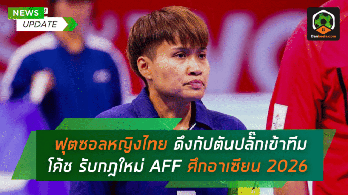 ฝั่ง ฟุตซอลหญิงทีมชาติไทย ขยับตัวทันทีเพื่อรองรับข้อบังคับใหม่ ด้วยการดึง “กัปตันปลั๊ก” หทัยชนก เทพคุณ อดีตกัปตันทีมชาติที่เพิ่งประกาศรีไทร์ เข้ามาเป็นหนึ่งในทีมงานโค้ชชุดลุยศึกอาเซียน 2026 เติมความพร้อมทั้งเรื่องประสบการณ์ในสนามและความเข้าใจเกมระดับทีมชาติแบบเต็มสูบ