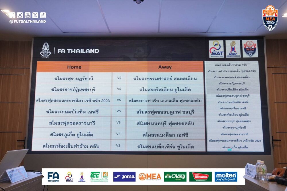 จับสลากแล้ว ศึก MEA ฟุตซอลไทยลีก 2026 พร้อมระเบิดความมันส์ต้นเดือนพฤษภาคม