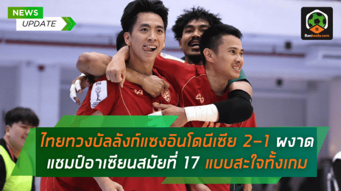 ฟุตซอลทีมชาติไทย โชว์หัวใจแชมป์ได้อย่างสมศักดิ์ศรี หลังพลิกสถานการณ์จากที่ตกเป็นรองกลับมาแซงชนะ อินโดนีเซีย 2-1 ในรอบชิงชนะเลิศ ศึก ฟุตซอลชิงแชมป์อาเซียน 2026 เมื่อวันอาทิตย์ที่ 12 เมษายน 2569 ส่งทัพโต๊ะเล็กไทยผงาดครองแชมป์รายการนี้เป็นสมัยที่ 17 ได้อย่างยิ่งใหญ่