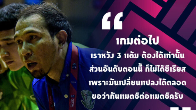 “สำหรับเกมถัดไปที่เราจะออกไปเยือน ศรีราชา เราหวังคว้า 3 แต้มเต็ม ต้องทำให้ได้สถานเดียว ส่วนเรื่องอันดับที่ตกลงมาอยู่อันดับ 6 ผมไม่ค่อยกังวล เพราะมันสามารถเปลี่ยนแปลงได้ตลอด เราจะขอเน้นไปทีละแมตช์ครับ”