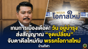 - เกมการเมืองเดือด! วัน อยู่บำรุง ส่งสัญญาณ “จุดเปลี่ยน” จับตาดีลใหม่กับ พรรคโอกาสใหม่ จะเกิดขึ้นจริงหรือแค่จังหวะวัดใจ