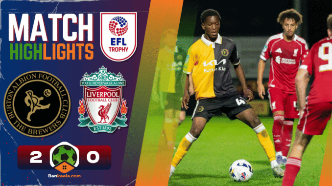 เปิดหัว EFL Trophy กลุ่ม H ได้อย่างเร้าใจ เบอร์ตัน อัลเบี้ยน โชว์ความเด็ดขาดจัดการทุบ ลิเวอร์พูล U21 ไปด้วยสกอร์ 2-0 ในเกมที่พวกเขาคุมจังหวะได้เหนือกว่าชัดเจน จากสองประตูของ ฟาบิโอ ทาวาเรส นาทีที่ 37 และ ยูเลียน ลาร์สสัน นาทีที่ 67 แม้จะครองบอลน้อยกว่าตามสไตล์ แต่เกมรุกนั้นคมกริบ ผลบอลสด ยืนยันฟอร์มของเจ้าถิ่นว่ามีความแน่นอนในพื้นที่สุดท้าย ขณะที่ฝั่งหงส์แดงชุดเล็กแม้จะพยายามสู้เต็มที่แต่ขาดความคมจนสุดท้ายต้องยอมศิโรราบ