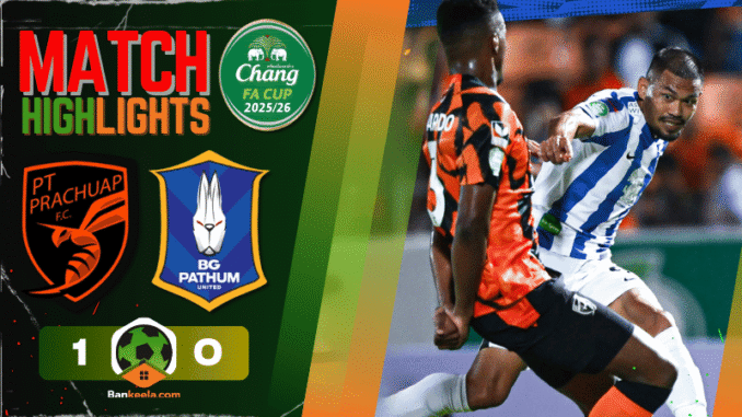 บ้านกีฬา ขอสรุปเกมเดือดแห่งค่ำคืน ช้าง เอฟเอ คัพ รอบ 16 ทีมสุดท้าย ที่ พีที ประจวบ เอฟซี เปิดบ้านเชือด บีจี ปทุม ยูไนเต็ด 1-0 แบบหายใจรดต้นคอ เกมนี้อึด อัด ดุดันทุกจังหวะ ก่อนที่จุดตัดสินจะเกิดขึ้นในครึ่งหลังจากลูกกลางอากาศสุดเฉียบของ “มิเชล ลิม่า” นาที 73 ส่งบอลเสียบตาข่ายพาทีมเฮลั่น ผลบอลสด บอกชัดว่านี่คือเกมที่สูสี ผลัดกันกดดัน แต่เจ้าบ้านคมกว่าในจังหวะสุดท้าย และรักษาสกอร์ได้จนจบเกม