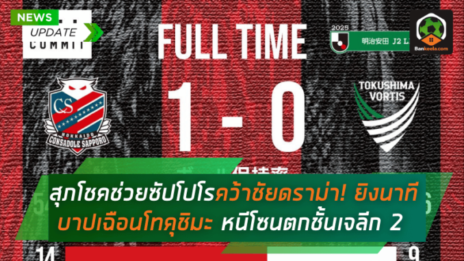 สุภโชคช่วยซัปโปโรคว้าชัยดราม่า! ยิงนาทีบาปเฉือนโทคุชิมะ 1-0 หนีโซนตกชั้นเจลีก 2 อย่างสุดระทึก