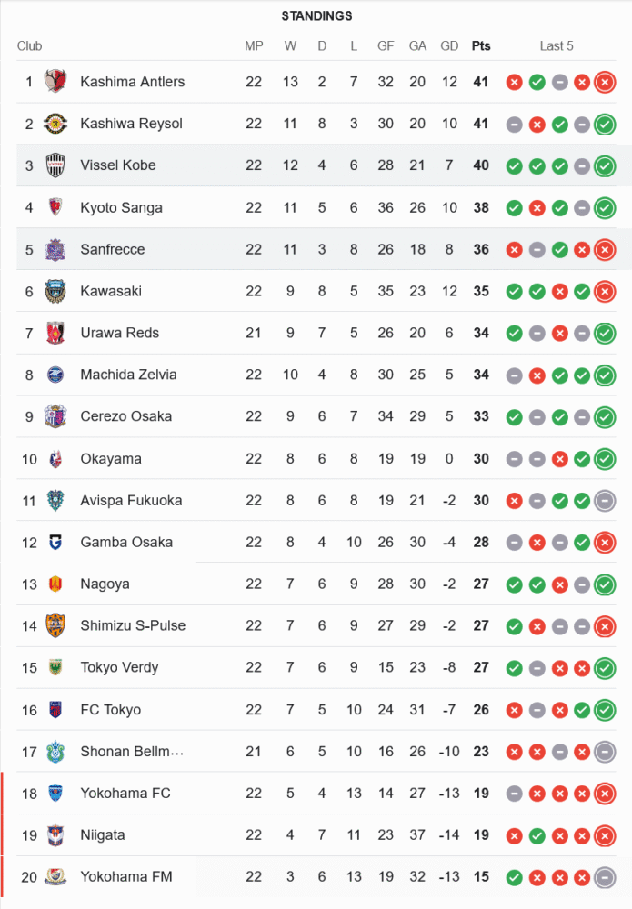 ชัยชนะนัดนี้ทำให้โกเบเก็บเพิ่มเป็น 40 คะแนนจาก 22 นัด รั้งอันดับ 3 ตามหลังจ่าฝูงเพียงแต้มเดียว ส่วนฮิโรชิม่ายังอยู่ที่ 5 มี 36 คะแนน เส้นทางลุ้นแชมป์ยังไม่ปิด แต่ต้องเร่งฟอร์มหลังแพ้สองเกมติด