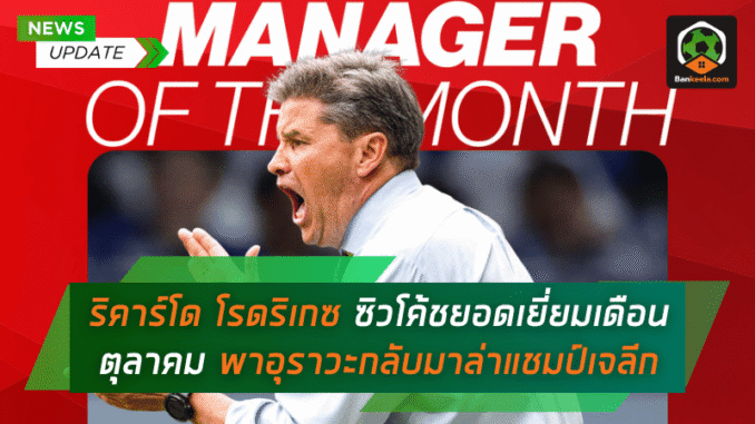 เรียกได้ว่ากำลังอยู่ในช่วงพีคสุดสำหรับ ริคาร์โด โรดริเกซ กุนซือชาวสเปนของทีม อุราวะ เรดส์ หลังโชว์ผลงานสุดเฉียบในศึก เจลีก 1 ตลอดเดือนตุลาคมที่ผ่านมา ด้วยการพาทีมเก็บชัยได้ถึง 3 นัดติดต่อกัน แบบไร้พ่าย ส่งผลให้ฟอร์มโดยรวมของทีมกลับมาร้อนแรงอีกครั้ง และทำให้เจ้าตัวคว้ารางวัล ผู้จัดการทีมยอดเยี่ยมประจำเดือนตุลาคม ไปครองอย่างสมศักดิ์ศรี