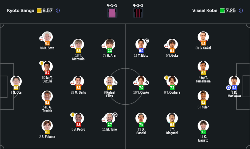 - โกโตคุ ซากาอิ (24) เรตติ้ง 6.1 – ประคองเกมทางขวา คอยบล็อกลูกครอสของเกียวโต