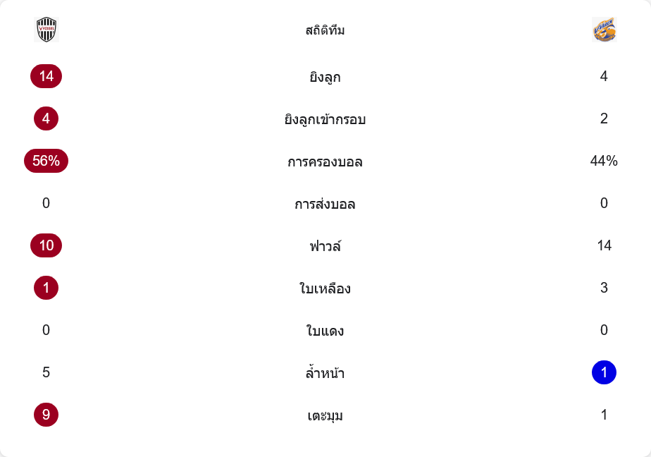 ลูกล้ำหน้าก็เป็นอีกตัวเลขที่บอกวิธีเล่นชัดเจน โกเบโดนจับล้ำหน้าถึง 5 ครั้ง เพราะดันไลน์สูงและวิ่งทำทางตลอด ส่วนทีมเยือนได้ไปเพียงครั้งเดียว ขณะที่ลูกเตะมุมเจ้าบ้านได้ถึง 9 ครั้ง เทียบกับนางาซากิที่ได้เพียง 1 หน ซึ่งสะท้อนการบุกกดดันต่อเนื่องของเจ้าถิ่นเต็ม ๆ