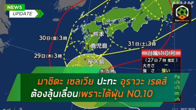 การแข่งขัน เจลีก นัดที่ 29 ในวันเสาร์นี้ กลายเป็นแมตช์ที่แฟนบอลต่างเฝ้ารอชมอย่างใจจดใจจ่อ เมื่อจ่าฝูง เอฟซี มาชิดะ เซลเวีย ต้องเปิดบ้านรับมือกับ อุราวะ เรดส์ ทีมที่มี เอกนิษฐ์ ปัญญา ร่วมทัพ แต่สถานการณ์กลับต้องเผชิญกับความท้าทายจากภัยธรรมชาติ เมื่อมีการแจ้งเตือนเรื่อง พายุไต้ฝุ่นหมายเลข 10 หรือ ไต้ฝุ่นชานชาน ซึ่งอาจพัดเข้ามากระทบในวันแข่งขัน