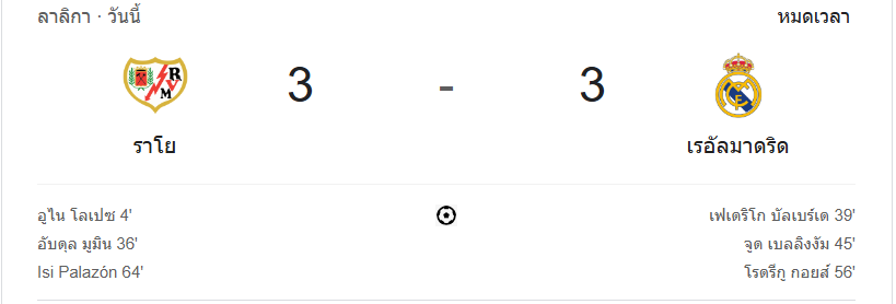 ผลบอลสด ลาลิกา 2024 ระหว่าง ราโย่ บาเยกาโน่ 3-3 เรอัล มาดริด วันนี้ 15/12/67