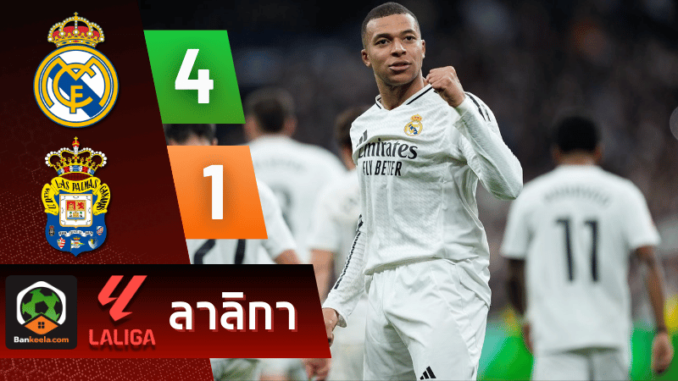 บ้านผลบอล สรุปหลังเกม ราชันชุดขาวทุบ ลาส พัลมาส 4-1 เอ็มบัปเป้โชว์ฟอร์มโหด พามาดริดรั้งจ่าฝูงลาลิกา