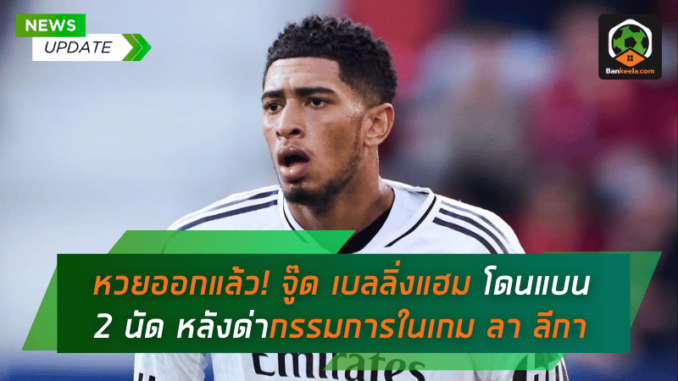 สถานการณ์ในถิ่น เรอัล มาดริด ร้อนระอุขึ้นอีกครั้ง เมื่อ สหพันธ์ฟุตบอลสเปน (RFEF) ออกคำตัดสินแบน จู๊ด เบลลิ่งแฮม เป็นจำนวน 2 นัด หลังเหตุการณ์ดราม่าในเกมที่ “ราชันชุดขาว” บุกไปเสมอ โอซาซูน่า 1-1 เมื่อวันเสาร์ที่ผ่านมา โดยมิดฟิลด์ทีมชาติอังกฤษถูกใบแดงไล่ออกจากสนามจากพฤติกรรมที่ผู้ตัดสินระบุว่าเป็นการใช้คำหยาบคายต่อเจ้าตัว