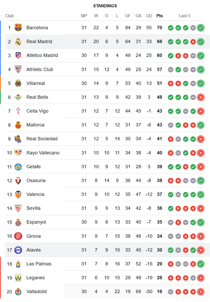 ชัยชนะนัดนี้ส่งผลให้เรอัล มาดริดเก็บเพิ่มเป็น 66 แต้มจาก 31 นัด ไล่จี้จ่าฝูงบาร์เซโลนาแบบหายใจรดต้นคอ ห่างเพียง 4 แต้มเท่านั้น ส่วนอลาเบสยังคงอยู่ในโซนล่างอันดับ 17 มี 30 แต้ม ต้องดิ้นรนหนีตกชั้นอย่างหนักในช่วงโค้งสุดท้ายของฤดูกาล