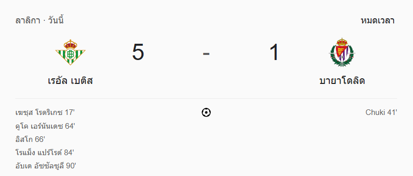 - จบเกม: เรอัล เบติส ไล่ถล่ม เรอัล บายาโดลิด 5-1