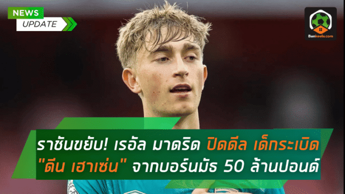 แรงไม่หยุดฉุดไม่อยู่จริง ๆ สำหรับ เรอัล มาดริด ที่ล่าสุดเดินหน้าปิดดีลสำคัญอีกครั้งในตลาดนักเตะ โดยคราวนี้เป็นคิวของ ดีน เฮาเซ่น กองหลังดาวรุ่งเลือดกระทิงดุวัยเพียง 19 ปี ที่ย้ายจากบอร์นมัธด้วยค่าตัวรวมสูงถึง 50 ล้านปอนด์ หรือคิดเป็นเงินไทยราว 2,250 ล้านบาท พร้อมเตรียมจรดปากกาเซ็นสัญญาระยะยาว 5 ปี เพื่อเข้ามาเสริมแกร่งแนวรับของราชันชุดขาวในระยะยาว