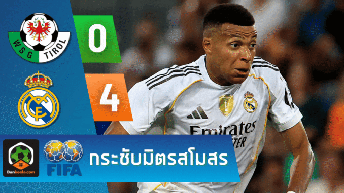 ศึกฟุตบอลกระชับมิตรสโมสรเมื่อคืนนี้ แฟนๆ บ้านกีฬา ได้รับชมเกมสุดดุดัน เมื่อ เรอัล มาดริด ขนทัพใหญ่บุกถล่ม WSG Tirol ถึงถิ่น 4-0 ตามรายงาน ผลบอลสด จากสนาม เกมนี้ขุนพลราชันโชว์ศักยภาพเกมรุกสุดโหด คุมบอลมากถึง 78% และผลิตสกอร์ได้อย่างเฉียบคมตั้งแต่ต้นจนจบ