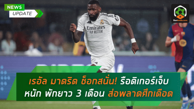 แฟนบอล เรอัล มาดริด ต้องพบข่าวร้ายเมื่อ อันโตนิโอ รือดิเกอร์ ปราการหลังตัวหลักวัย 32 ปี ได้รับบาดเจ็บกล้ามเนื้อต้นขาซ้ายอย่างรุนแรงระหว่างการฝึกซ้อม ล่าสุดมีการยืนยันแล้วว่าต้องพักยาวราว 3 เดือนเต็ม ส่งผลกระทบต่อเกมสำคัญทั้งในศึก ลา ลีกา และ ยูฟ่า แชมเปียนส์ลีก