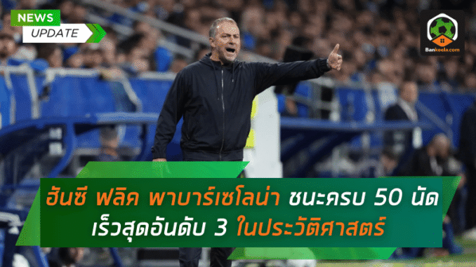 ผลงานระดับมาสเตอร์คลาสของ ฮันซี ฟลิค ยังคงเดินหน้าอย่างต่อเนื่อง หลังจากล่าสุดพา บาร์เซโลน่า เก็บชัยชนะครบ 50 นัด จากการคุมทีมเพียง 67 เกม กลายเป็นกุนซือที่พาทีมไปถึงหลักชัยนี้ได้เร็วที่สุดเป็นอันดับ 3 ในประวัติศาสตร์สโมสร ต่อจากสองตำนานอย่าง เอเลนีโอ เอร์เรร่า และ หลุยส์ เอ็นรีเก้ โดยเกมล่าสุด “เจ้าบุญทุ่ม” บุกอัด เรอัล โอเบียโด้ 3-1 ในศึก ลา ลีกา สเปน ที่สนาม เอสตาดิโอ การ์ลอส ตาร์เตียเร่ เมื่อวันพฤหัสบดีที่ 25 กันยายนที่ผ่านมา