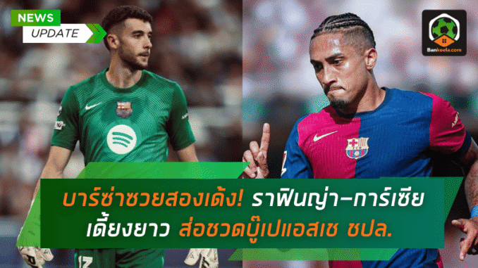 แฟนบอล บาร์เซโลน่า ต้องช็อกกันทั้งคัมป์นู เมื่อทีมได้รับข่าวร้ายสองระลอกพร้อมกันก่อนเกมใหญ่ ยูฟ่า แชมเปี้ยนส์ ลีก กลางสัปดาห์หน้า โดยทั้ง ราฟินญ่า ปีกความหวังทีมชาติบราซิล และ โจน การ์เซีย นายทวารมือหนึ่งของทีม ต่างถูกอาการบาดเจ็บเล่นงาน จนหมดสิทธิ์ลงสนามหลายสัปดาห์ ส่งผลกระทบโดยตรงต่อแผนการเล่นของ ฮันซี่ ฟลิค ที่กำลังนำทีมลุยโปรแกรมหฤโหด