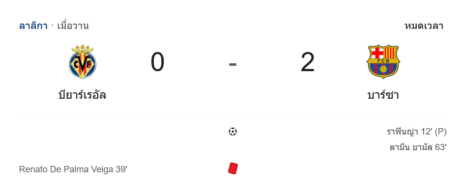 - 🟨 นาที 58 เอริค การ์เซีย ทำฟาวล์กลางสนาม รับใบเหลืองให้บาร์ซ่า